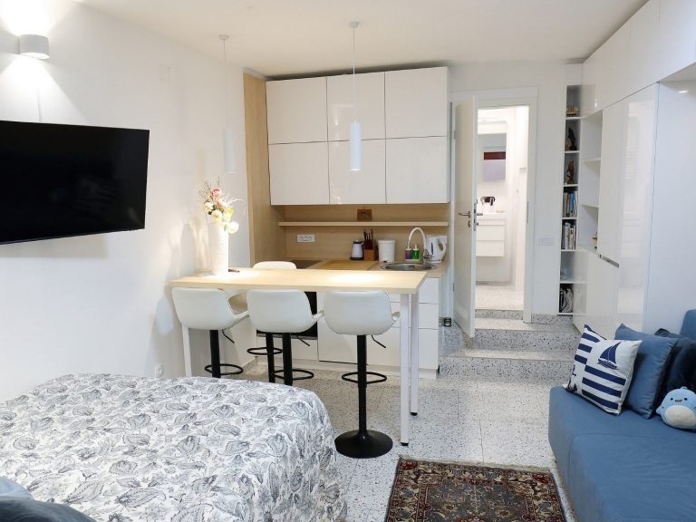 Das Studio befindet sich im Erdgeschoss eines Wohnhauses und bietet eine angenehme, durchdacht gestaltete Unterkunft für einen entspannten Aufenthalt am Meer.