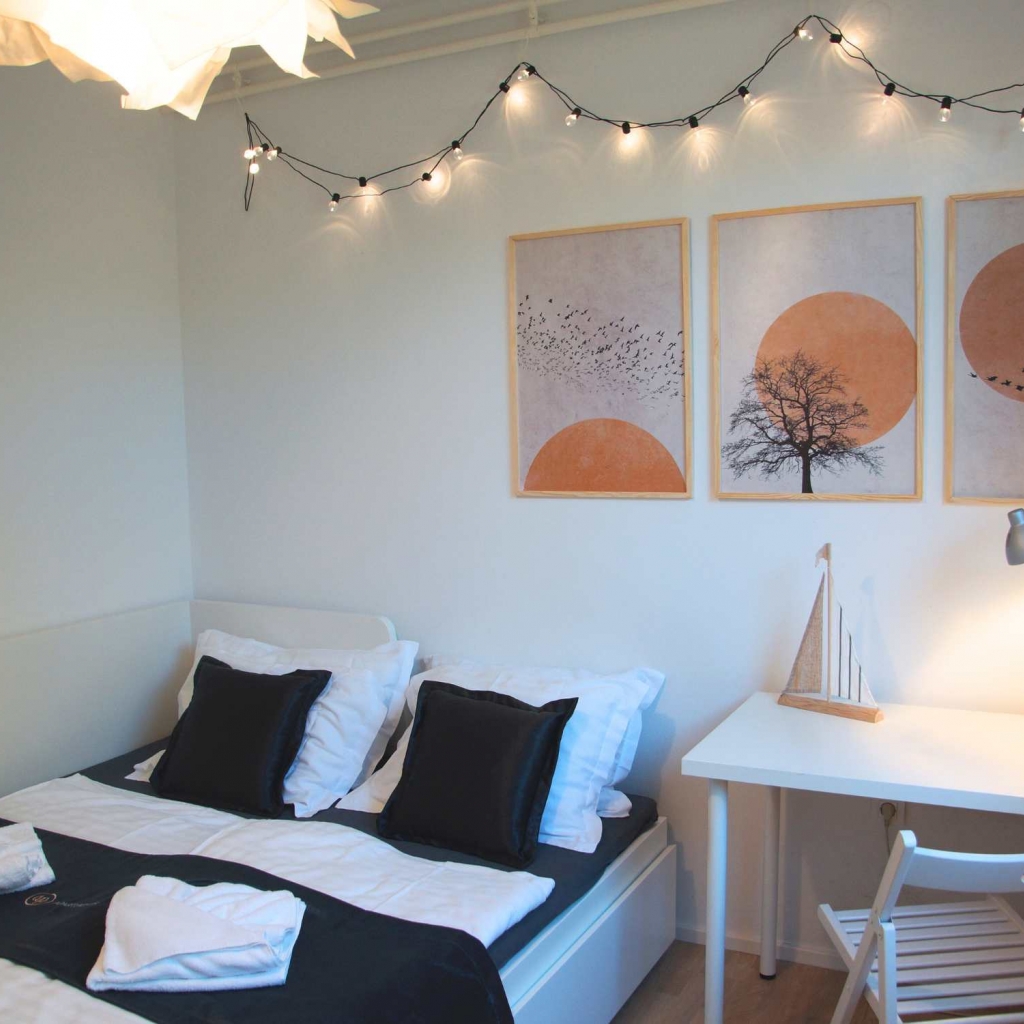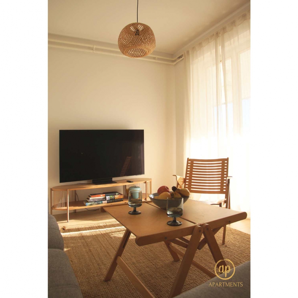 Das Apartment bietet Platz für bis zu 4 Personen und verfügt über zwei Schlafzimmer, ein Wohnzimmer, eine Küche und ein Badezimmer. Ein großzügiger Balkon lädt zum Entspannen ein. Den Gästen steht zudem eine gemeinschaftlich genutzte Grünfläche hinter dem Haus zur Verfügung. Ein Parkplatz, Klimaanlage, WLAN, Grillmöglichkeiten sowie Bettwäsche sind im Preis inbegriffen. Kleine Haustiere sind gegen einen geringen Aufpreis willkommen.