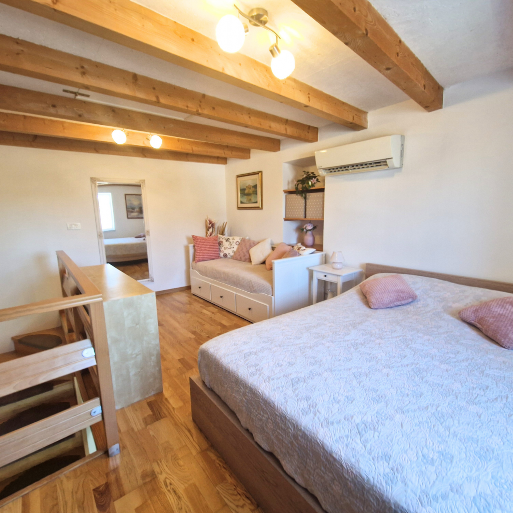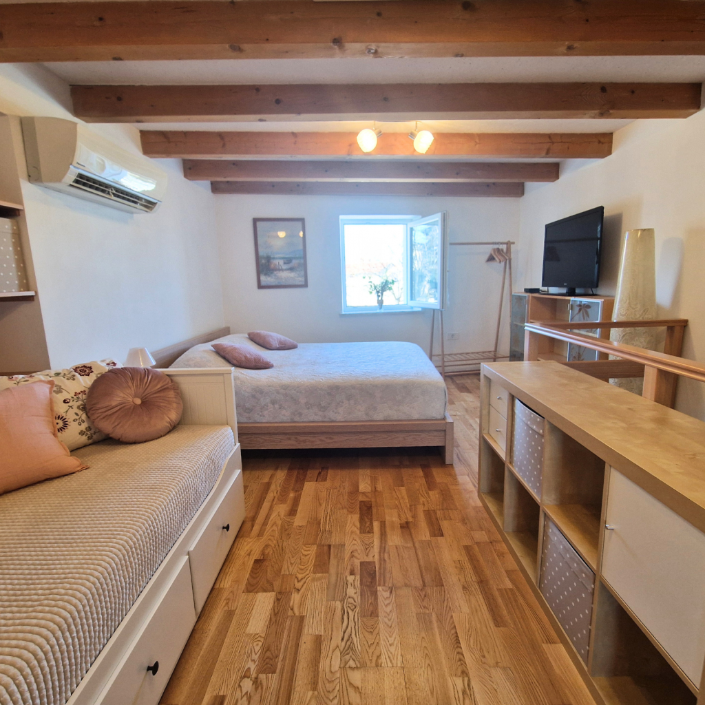Für Familien gibt es nur 50 Meter entfernt einen Spielplatz, und direkt vor dem Haus verläuft der berühmte Parenzana-Rad- und Wanderweg. Gerne organisieren wir für Sie einen Fahrradverleih, damit Sie die wunderschöne Umgebung erkunden können.