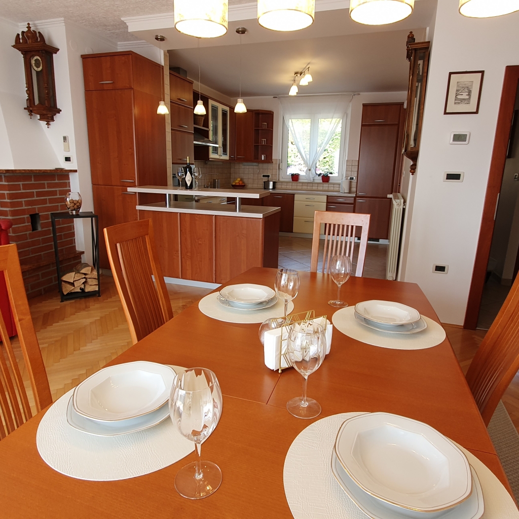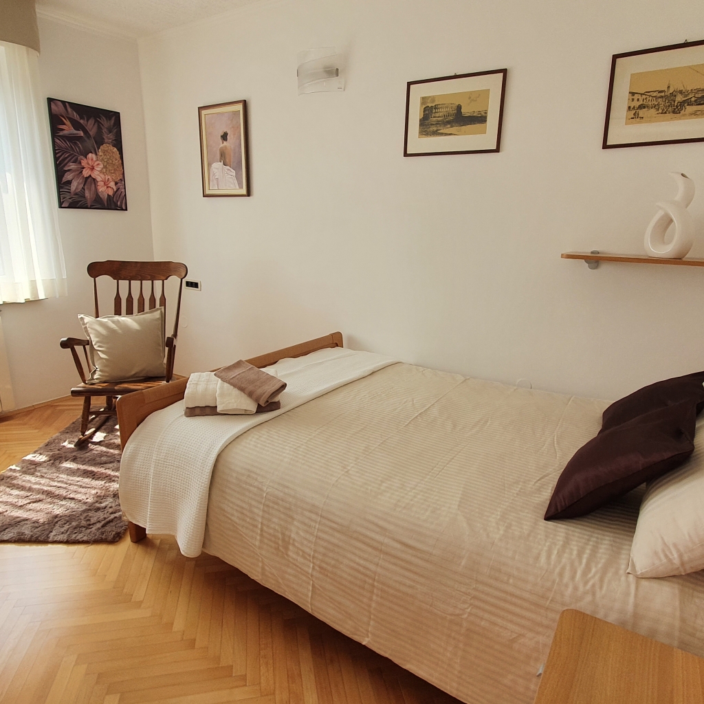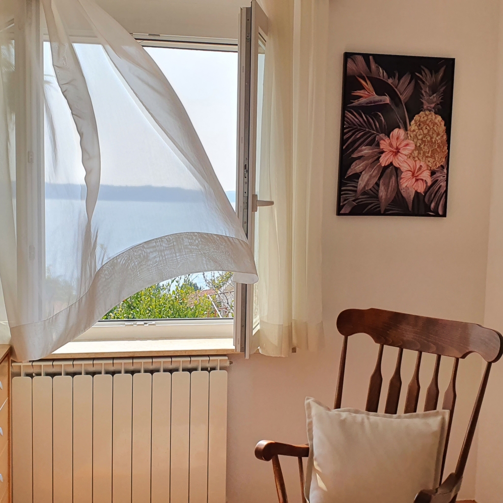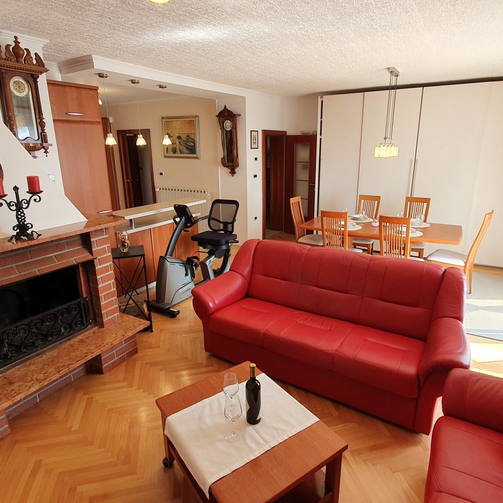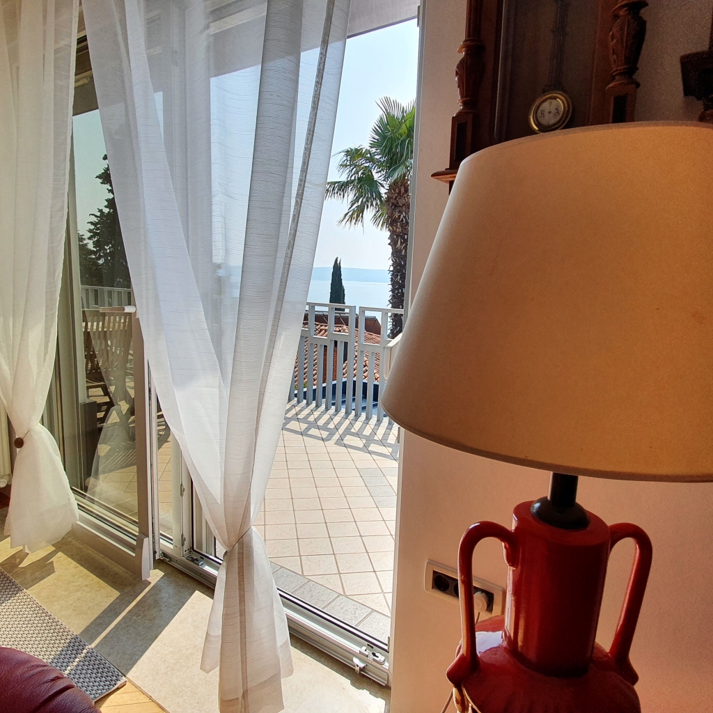 Spacious and above-standard furnished holiday apartment with one of the most beautiful views of the sea that Portorož has to offer. Aria Wellness apartment is located in Beli Križ above Portorož and provides truly perfect comfort. The large kitchen will not let you down in even the most demanding kitchen endeavours, as it is equipped with all modern appliances. The kitchen continues into a spacious and sunny dining room and a comfortable living room with a fireplace and smart TV. Resting on the balcony with a view of the blue sea offers you a complete break from everyday life and relaxation, but you can also opt for some activities with the sports equipment available here. The apartment has a separate bedroom with a double bed with the possibility of using the sofa bed for two people in the living room. The entire apartment is air-conditioned, heated, safe and secure and offers wireless internet access. Next to the building, there is a covered car park. Upon arrival, each guest is also greeted with a welcome basket and small gifts.