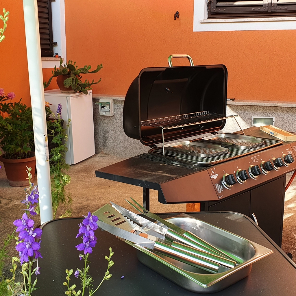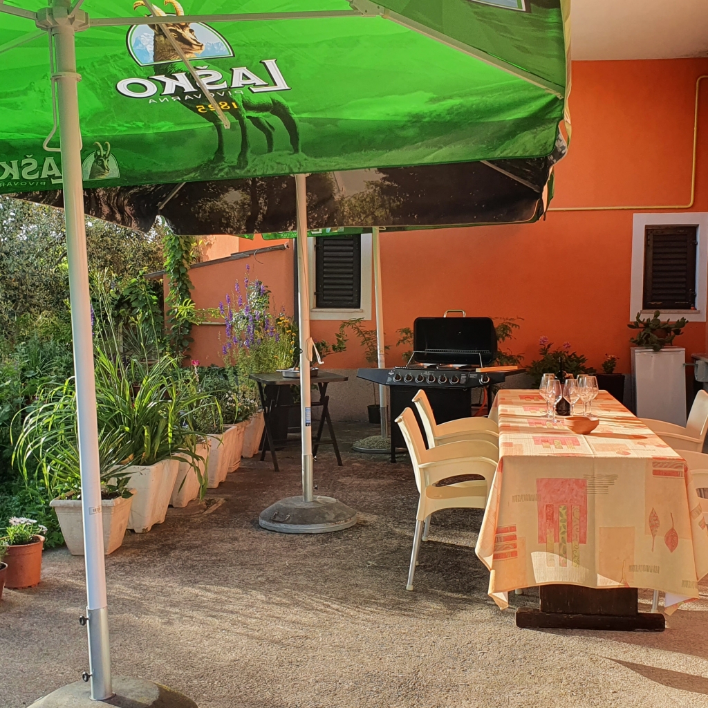 Next to the beautiful garden behind the house, there is a large terrace with a table for 12 people, a grill and all the necessary accessories for grilling. After lunch, you can relax on deckchairs and enjoy the view of the Dragonja river valley.