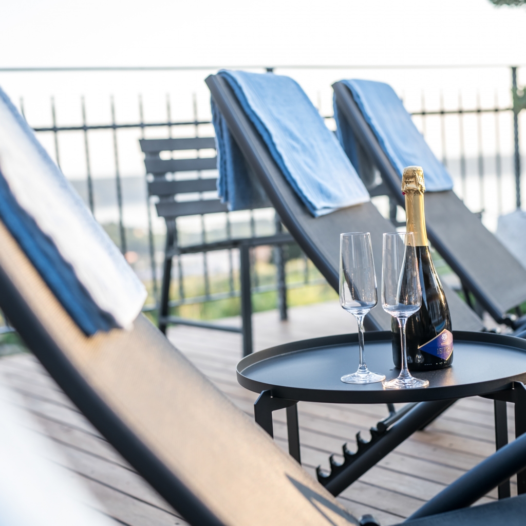 The VIP apartment with a view of the sea is suitable for an intimate family holiday, a gathering with friends or a business meeting. The rooms are furnished in elegant style interior design with the traditional component, offering maximum comfort. A spacious, modern apartment with a separate entrance is suitable for 6 to 8 people. It includes the social room, 3 bedrooms, the living room, the kitchen, the bathroom and a separate toilet and a sauna. We have made sure that you will never be bored in the social room because here you will find many board games, table football, wall darts and a large HD TV; you can also watch your favourite programs from the swimming pool.